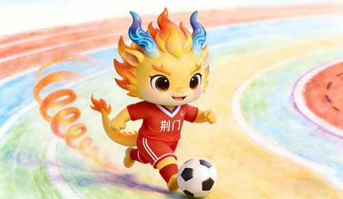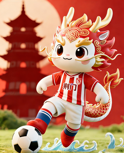 本吉祥物以龙为核心形象,紧扣足球运动,融入荆门本土文化符号。