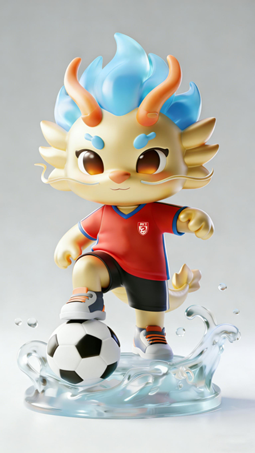 这是为荆门足球打造的IP形象——荆龙仔。以萌系小龙为核心载体,暖橙渐变的鬃毛与尾焰则融入了荆门万亩油菜花的明媚生机,传递出蓬勃向上的生命力。角色脚踩足球,立于灵动的漳河水浪之上,既呼应了荆门水乡底蕴,又将拼搏进取的足球精神与地域文化深度融合。整体软萌治愈的潮玩质感,让传统文化与体育活力碰撞出独特辨识度,成为连接城市与球迷的情感纽带。