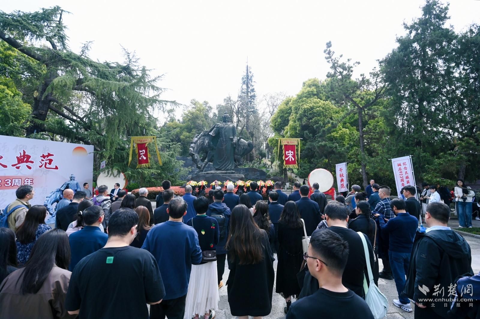 当日,由武汉市社科联、武汉市社科院、黄鹤楼公园管理处、黄鹤楼文化旅游发展有限公司与武汉岳飞文化研究会共同主办的“ 武穆雄风,千秋典范 ——纪念民族英雄岳飞诞辰923周年”活动在此举行。相关领导嘉宾、岳飞后裔代表及各界人士近百人齐聚一堂,共同缅怀这位伟大民族英雄的爱国精神与英雄风骨。
