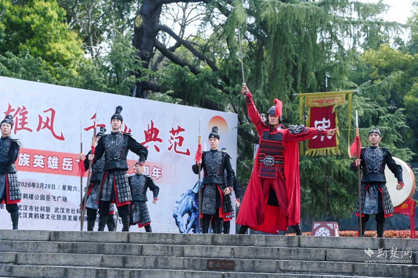 荆楚网(湖北日报网)讯(记者张扬、通讯员王逸)“怒发冲冠,凭栏处,潇潇雨歇……”“却归来、再续汉阳游,骑黄鹤! ”3月28日上午,民族英雄岳飞900年前写下的千古名句,在武汉市黄鹤楼公园岳飞广场上空久久回荡。