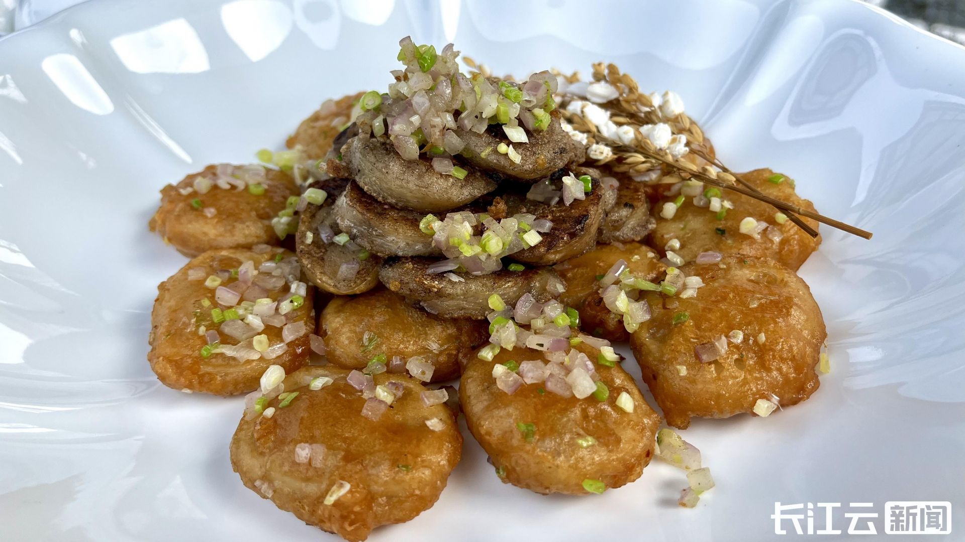 话音刚落,一道道融合樱花意象与楚菜精髓的佳肴次第上桌。樱花柠檬山药造型雅致如慕斯,入口清爽绵密;盐渍樱花武昌鱼,将湖鲜本味与樱花清香巧妙融合;洪湖野藕藕夹外酥里嫩,肉香与藕甜交织,刚上桌便俘获众人味蕾。