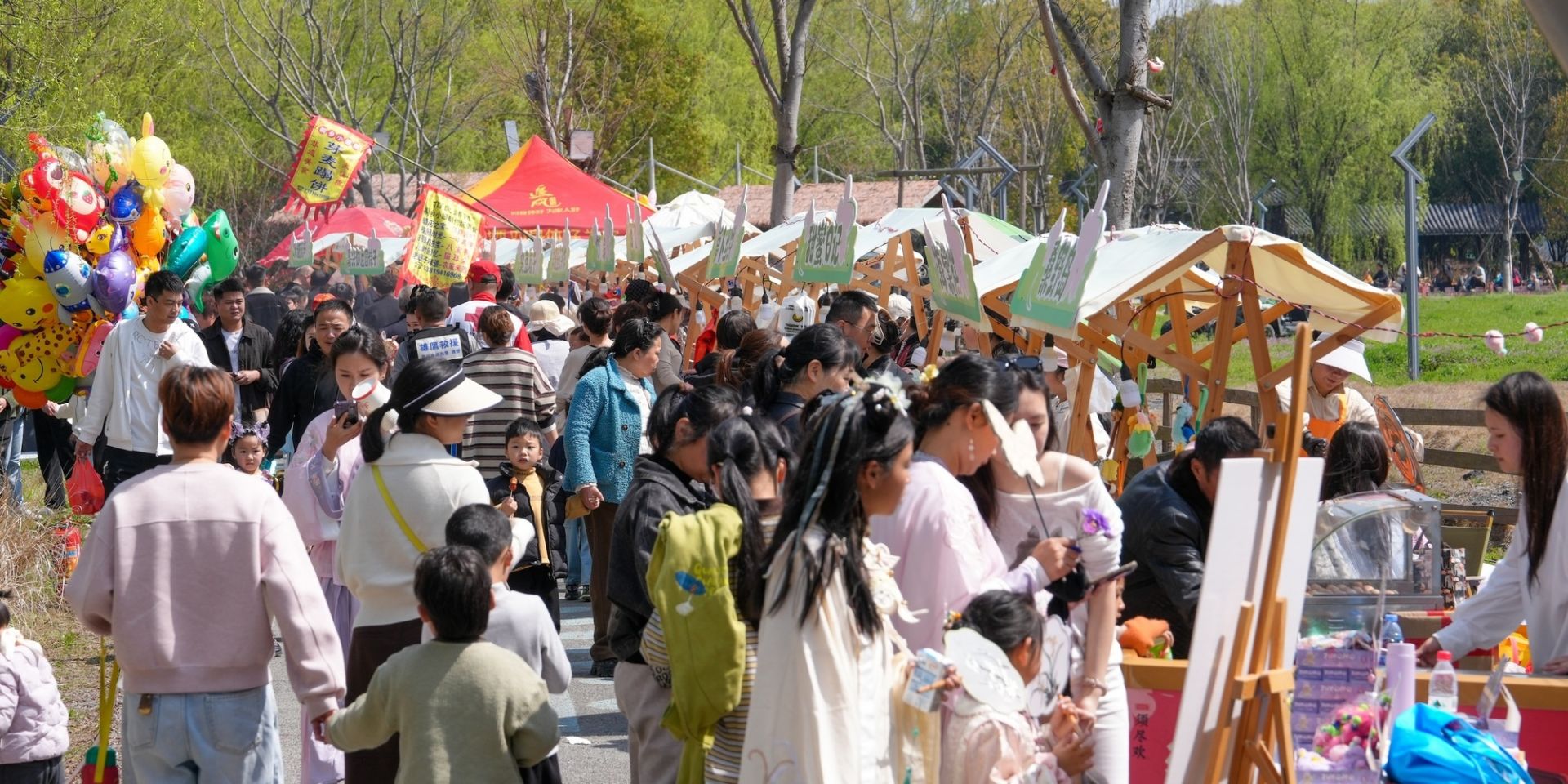 现场,沿着桑野岛主路一路走去,“春味市集”与“春品文创”两大展区比邻而设,人声鼎沸,香气四溢。这里不仅是美食与好物的汇聚地,更成为今年民俗会最“出圈”的消费新场景。