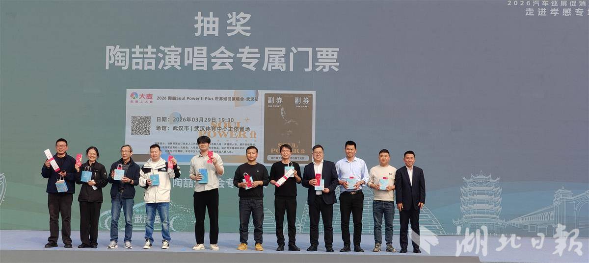 湖北日报讯(记者汪洋、通讯员蒋秋雨)3月28日下午,“武汉造神州行”2026汽车巡展促消费活动走进孝感汉川。本次专场活动吸引大量当地市民参加,10位幸运观众获赠20张陶喆演唱会门票。