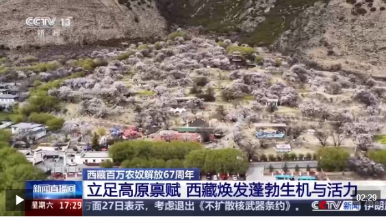 今天(28日)是西藏百万农奴解放纪念日。目前,西藏步入发展最好、变化最大、群众得到实惠最多的历史时期。西藏已有200多条国内国际航线、1359公里铁路、12.52万公里公路。