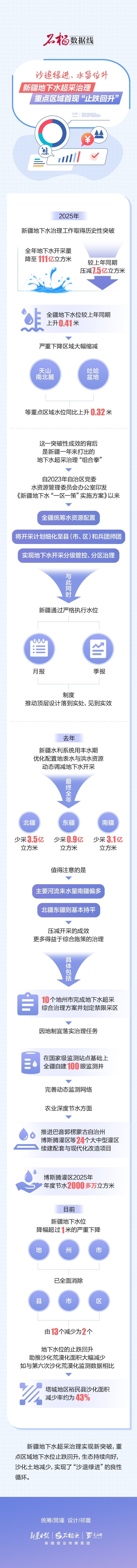 新疆地下水超采治理实现新突破,重点区域地下水位止跌回升,生态持续向好,沙化土地减少,实现了“沙退绿进”的良性循环。