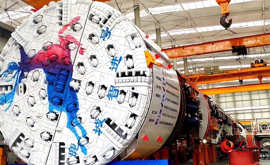 中铁工程装备集团总装车间里,已完成验收的盾构机,正静待奔赴工程一线。人民网记者 徐驰摄