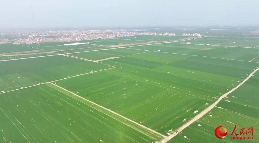 中原沃野,麦苗起身拔节,生机勃发。人民网记者 尚明桢摄