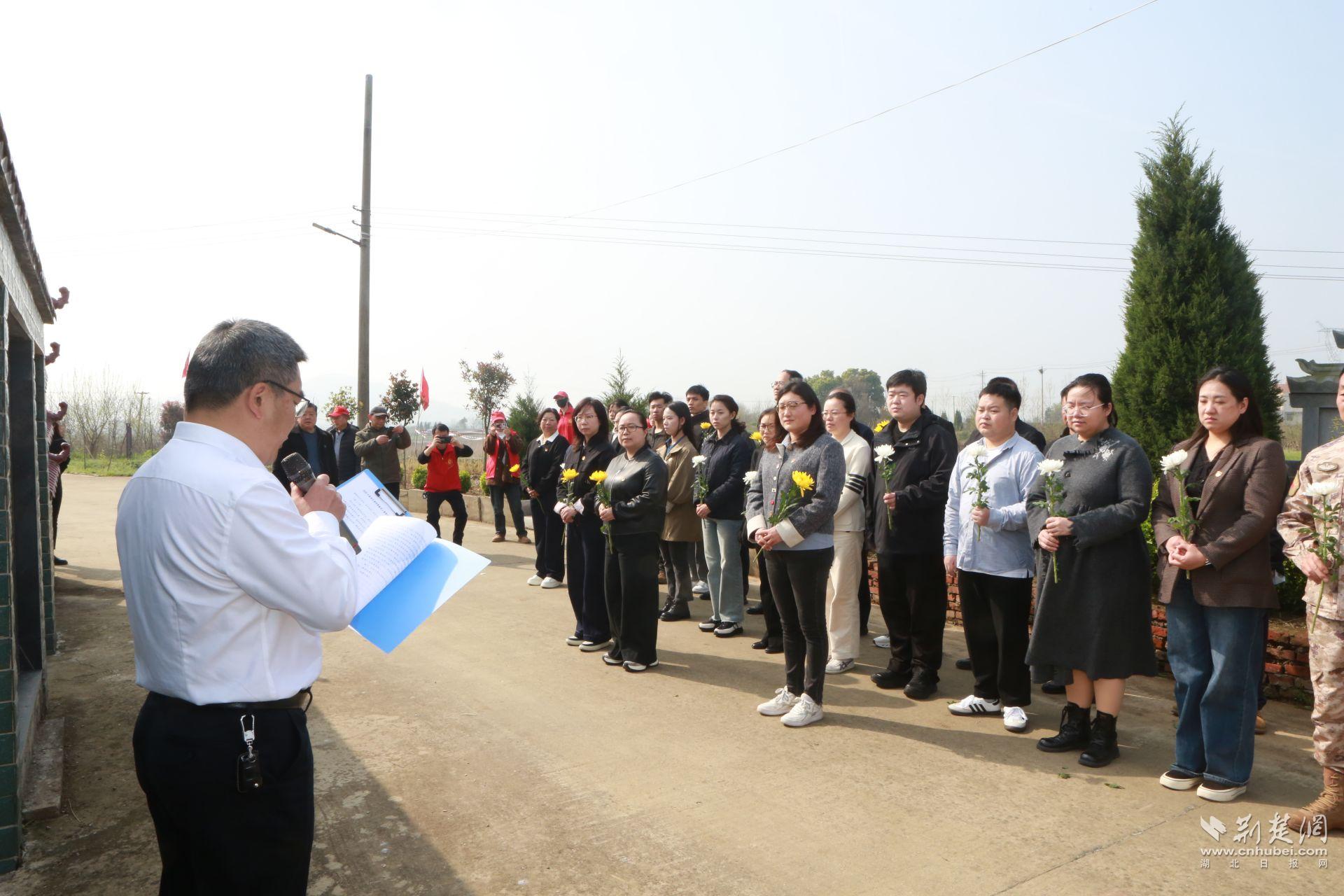 武汉市关爱退役军人协会、张富清志愿服务队,以及武汉大学、中南财经政法大学退役大学生代表,一同赴何家门烈士墓开展清明祭扫仪式和环境整治活动。