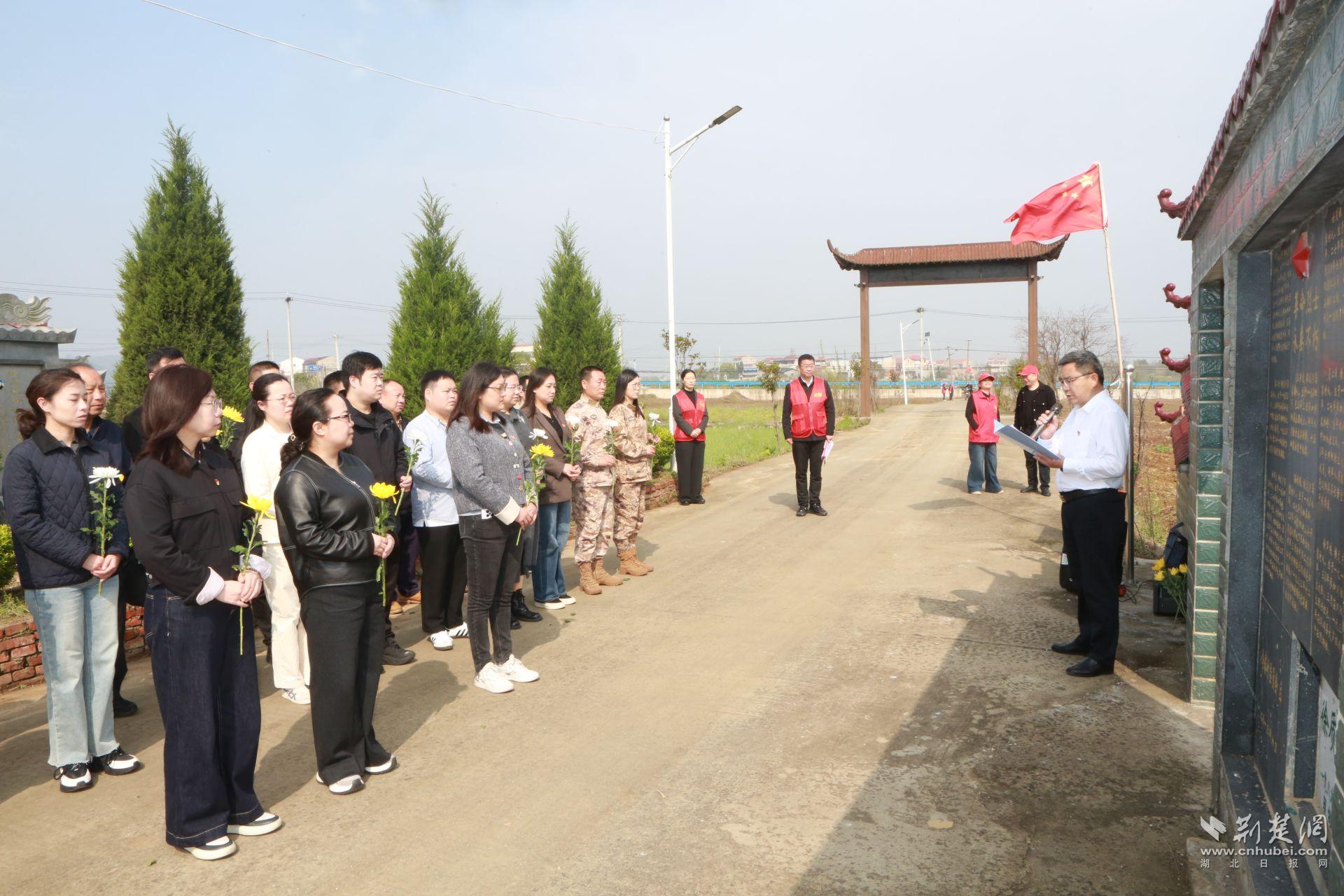 荆楚网(湖北日报网)讯(通讯员 常梦星)又是一年清明至,缅怀英烈寄哀思。在清明节来临之际,武汉市军队离休退休干部安置管理办公室、武汉市荣军优抚医院、蔡甸区退役军人事务局联合武汉市关爱退役军人协会、蔡甸区关爱退役军人协会、武汉陆海空爱国主义教育展览馆、张富清志愿服务队、武汉大学、中南财经政法大学以及长江大学的退役大学生代表,齐聚蔡甸区零散烈士纪念设施,开展以“缅怀革命先烈・守护英烈荣光・传承红色基因”为主题的清明祭扫活动。