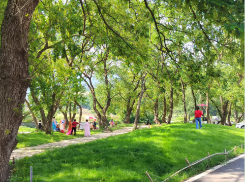 春日柳林,处处皆是诗情画意。连片油菜花田金黄璀璨,随风翻涌成浪漫花海;山间桃花、野樱花次第绽放,粉白相间,缀满枝头,漫步乡间小道,踏青赏花,满目皆是春意。作为万树村建设示范村,村内绿树成荫、198棵古柳垂堤,一步一景、移步换景,清新的空气扑面而来,是远离喧嚣、亲近自然的绝佳去处。