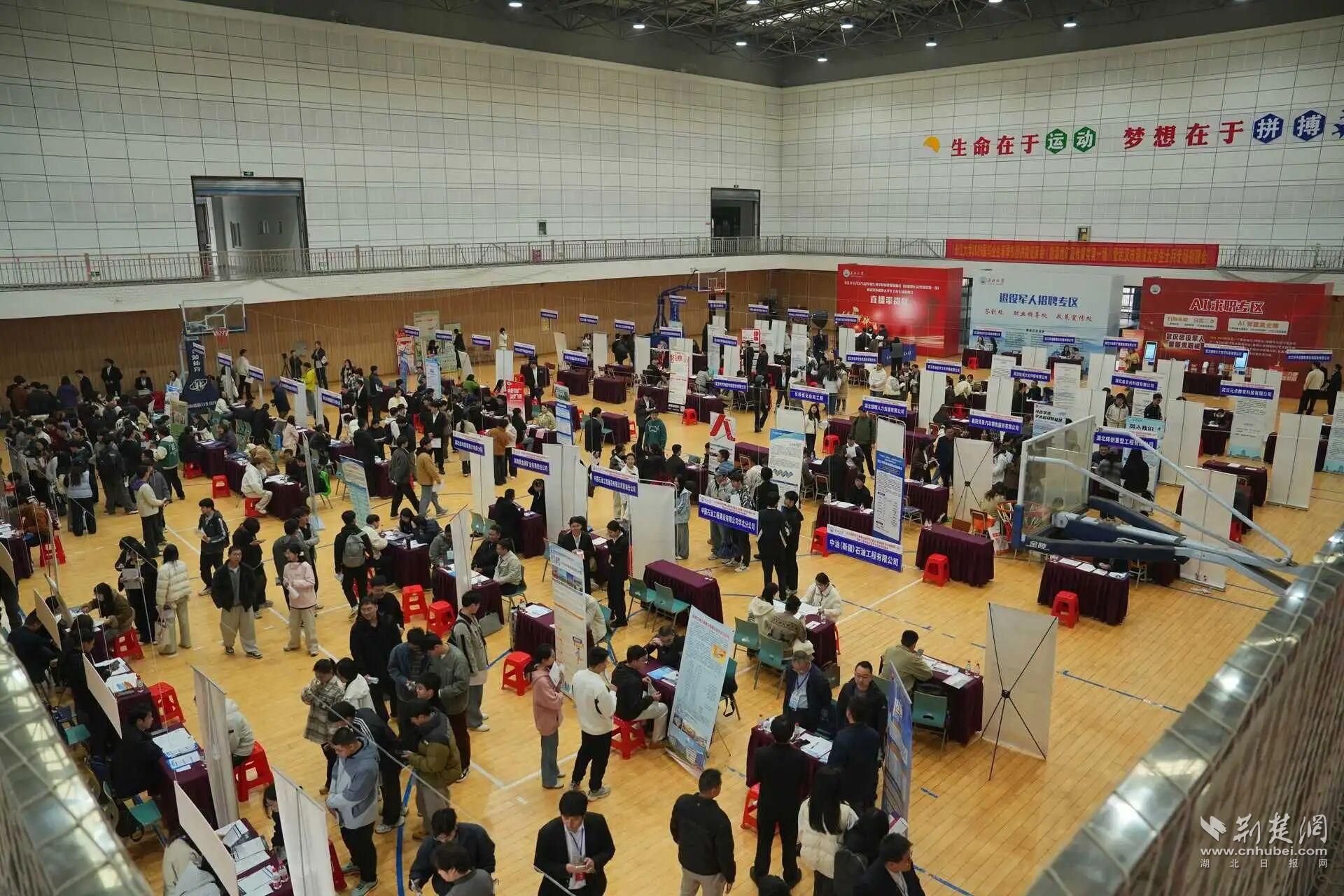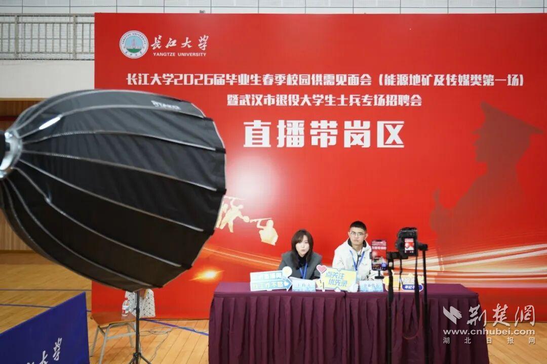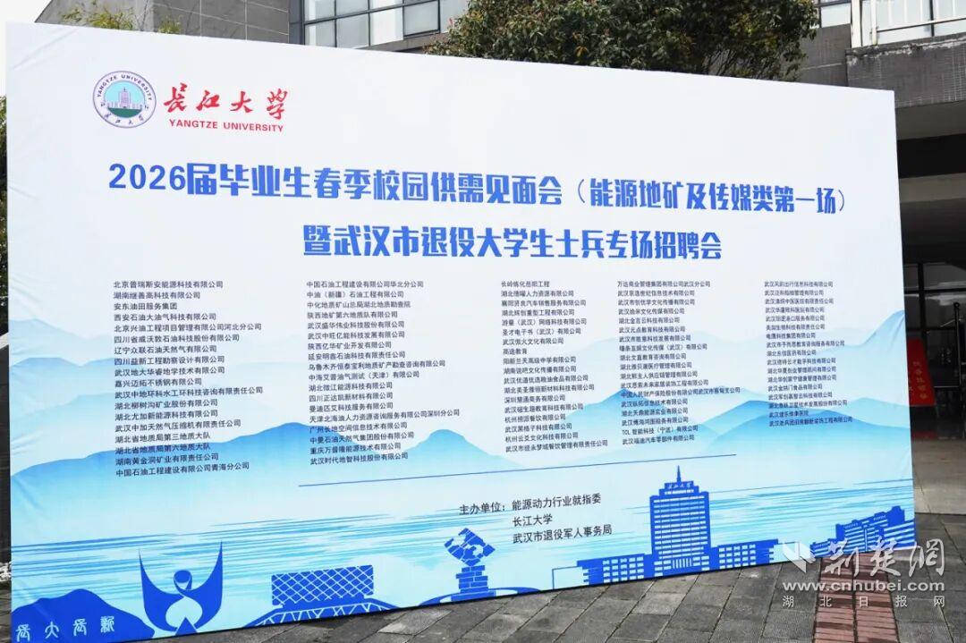 荆楚网(湖北日报网)讯(通讯员 郑程华)3月26日上午,长江大学2026届毕业生春季校园供需见面会(能源地矿及传媒类)暨武汉市退役大学生士兵专场招聘会在长江大学武汉校区室内体育馆举行,馆内人潮涌动,求职热情高涨,现场气氛热烈。