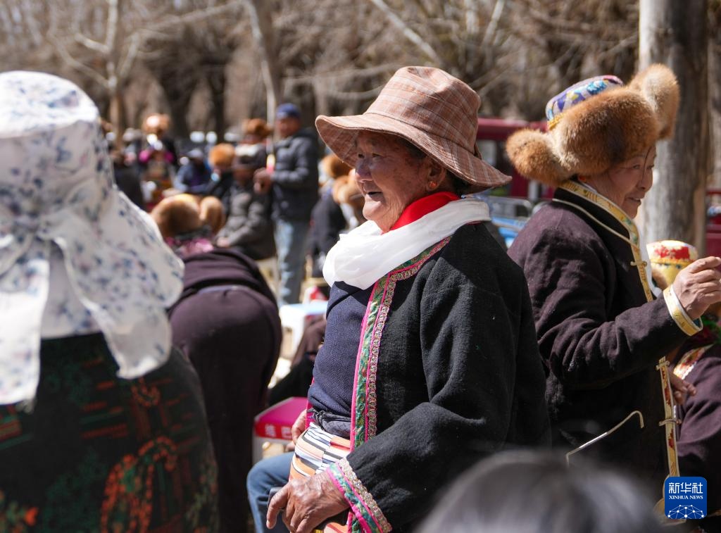 卓玛吾珠和乡亲们在庆祝春耕仪式上(3月16日摄)。