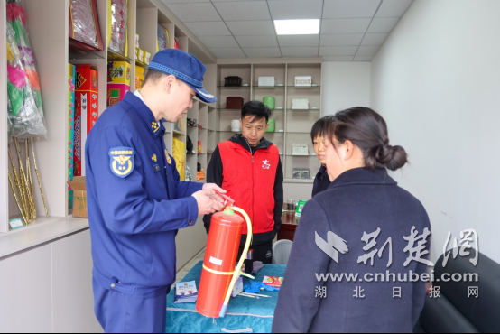 消防监督员对祭祀用品售卖点消防器材进行检查。 通讯员 供图