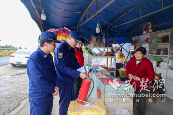 荆楚网(湖北日报网)讯(通讯员 魏欢欢)随着清明节的临近,祭祀活动逐渐增多,火灾风险也随之攀升。3月27日,荆门市掇刀区消防救援局深入辖区公墓及周边祭祀用品售卖点,开展消防安全隐患排查与防火宣传工作,通过“检查+宣传”双管齐下,筑牢清明祭祀防火安全屏障。