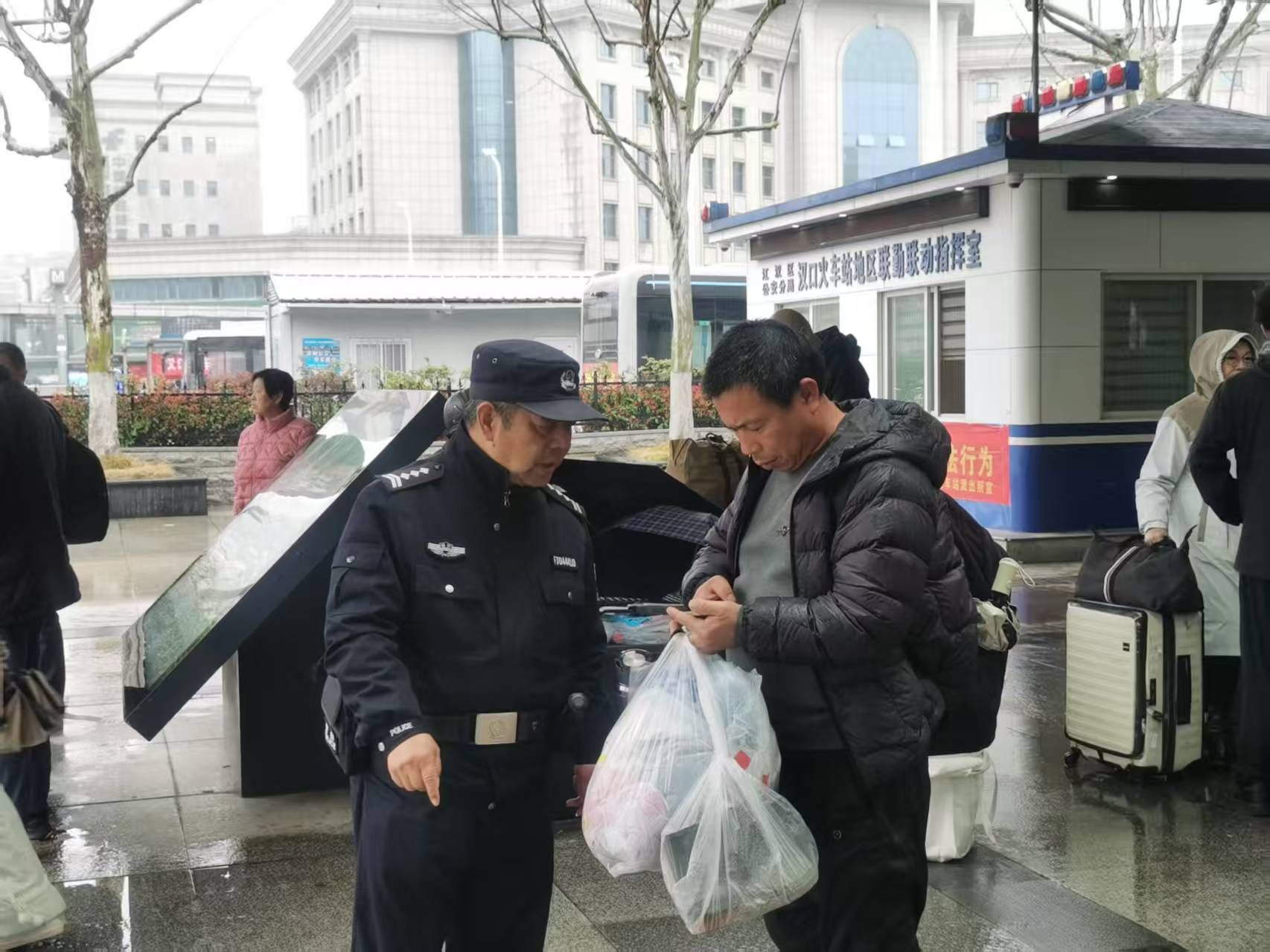 如今即将退休的他,每天仍旧准时出现在广场,成了汉口火车站一个特殊的平安印记。