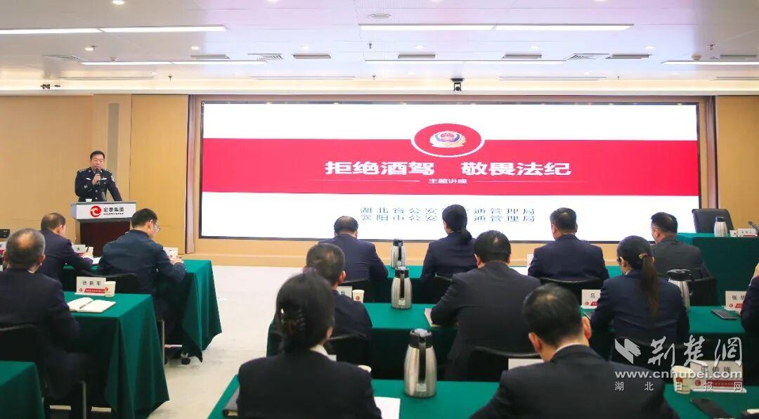 ▲ 3月12日,湖北省公安厅交通管理局宣教部门民警在长江产业集团发起“拒绝酒驾 文明出行”安全倡议