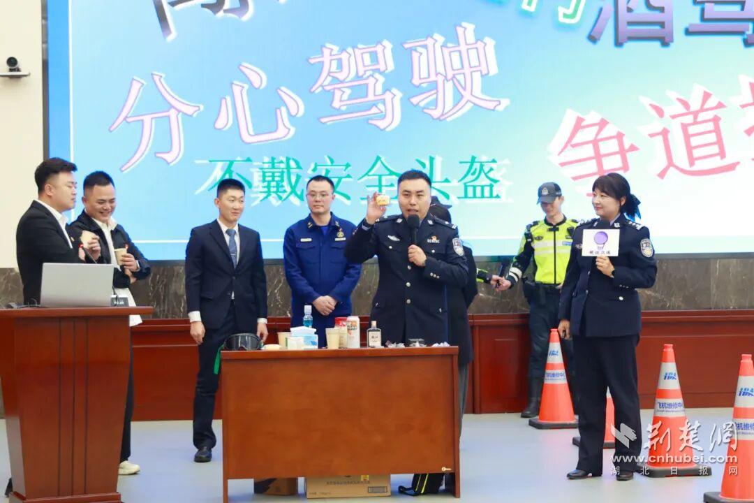 ▲ 3月26日,武汉交警通过沉浸体验、案例剖析,拆解酒驾醉驾背后的四重成本,打造针对湖北机场集团的定制化交通安全课