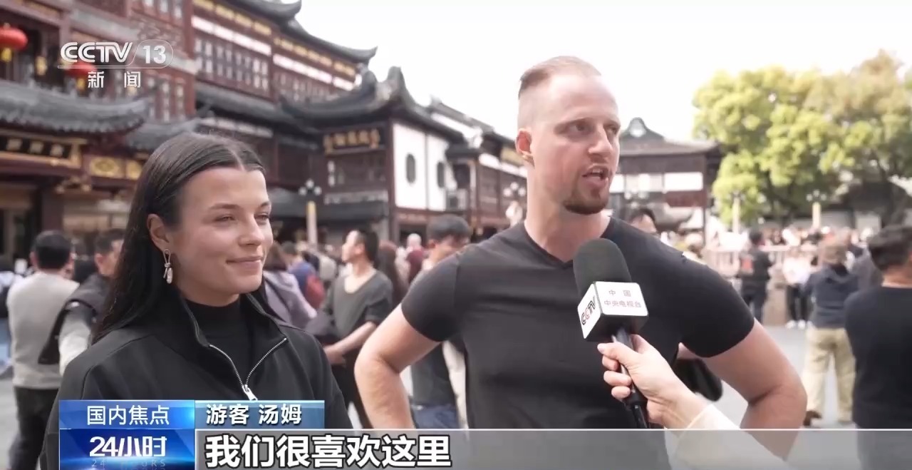 游客 汤姆:我是第一次来上海,喜欢这里的市集,看起来很特别,我们也喜欢这里的建筑,喜欢这里的一切。