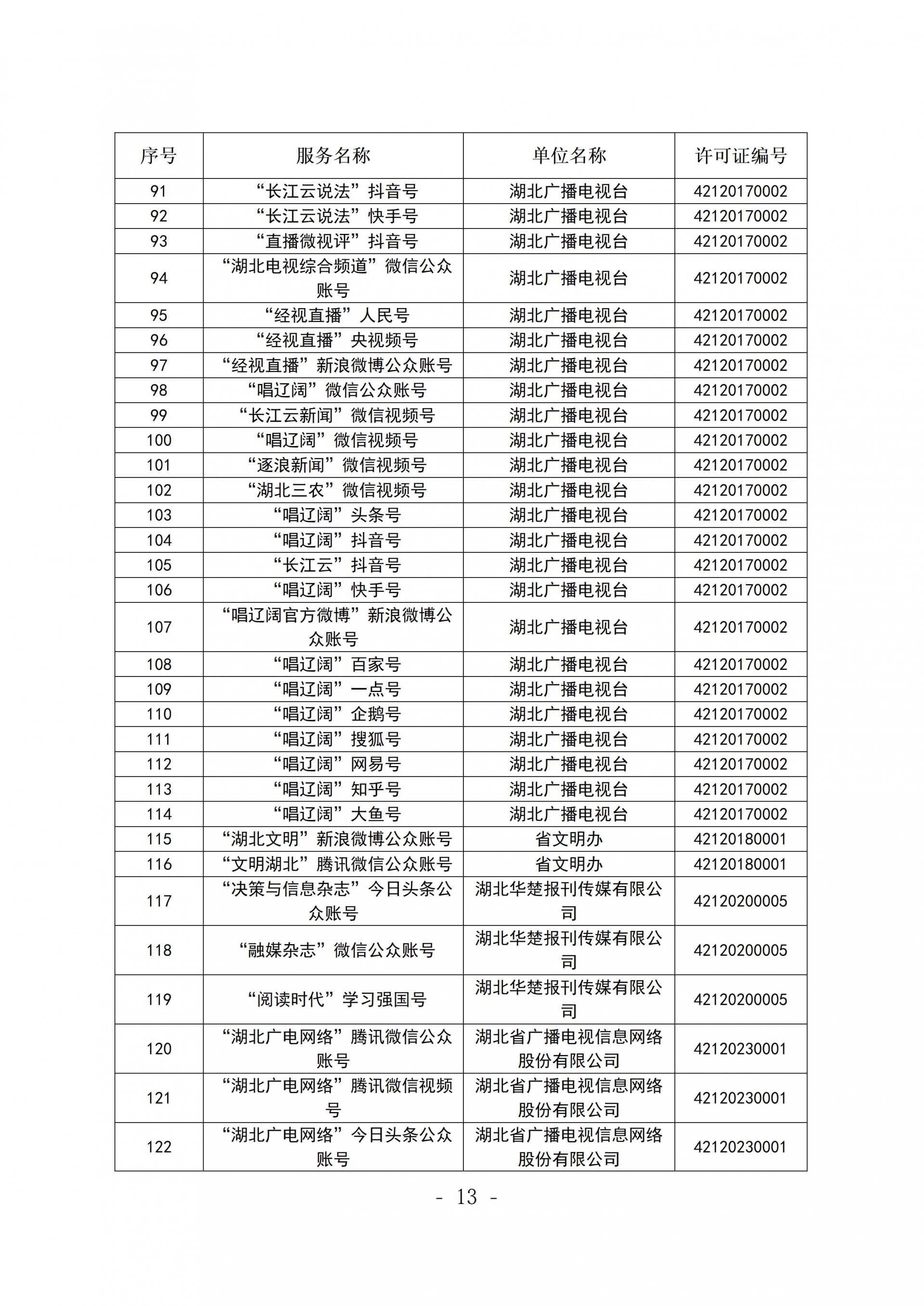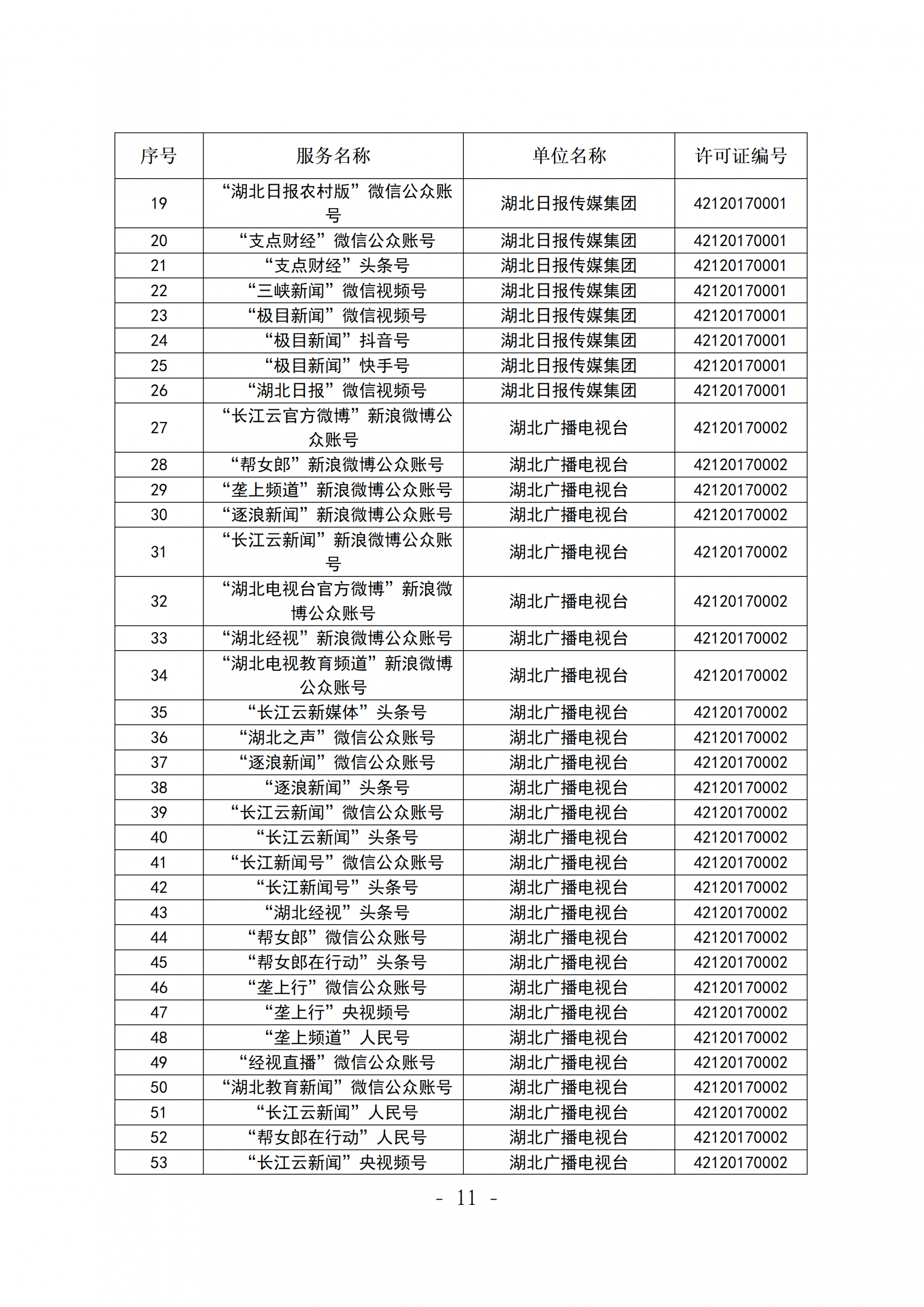 广播电视节目制作经营许可证(鄂)字第00011号