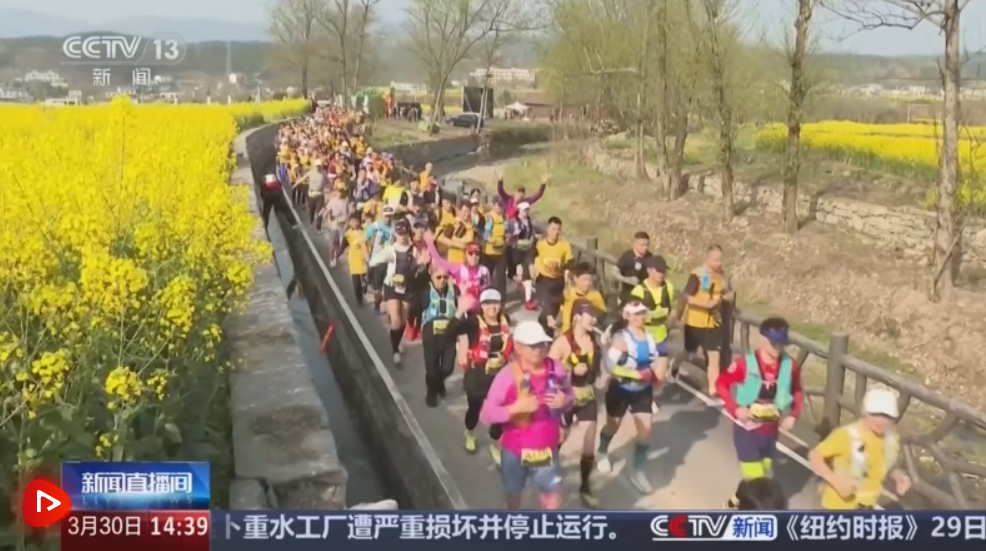在宜昌市夷陵区油菜花核心观赏区的分乡镇,一场登山赛吸引了来自全国各地的八百余名登山爱好者,他们奔跑在金黄色的花海中,享受体育竞技和乡村美景带来的极致感受。