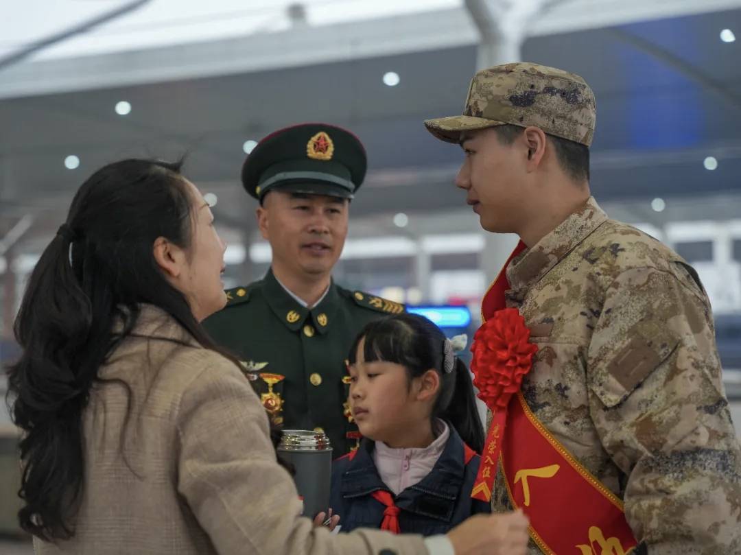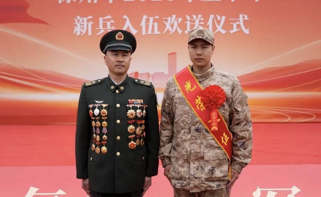 李小龙是湖北省当阳市两河镇新星村人,现任第71集团军某旅一级军士长。1997年12月,18岁的他响应祖国召唤,告别故土亲人,穿上了梦寐以求的军装。本月18日,在湖北艺术职业学院读大二的儿子李瑞又携笔从戎,踏上了奔赴军营的列车。站台上,李小龙亲手为儿子整理绶带和大红花,送他出征。