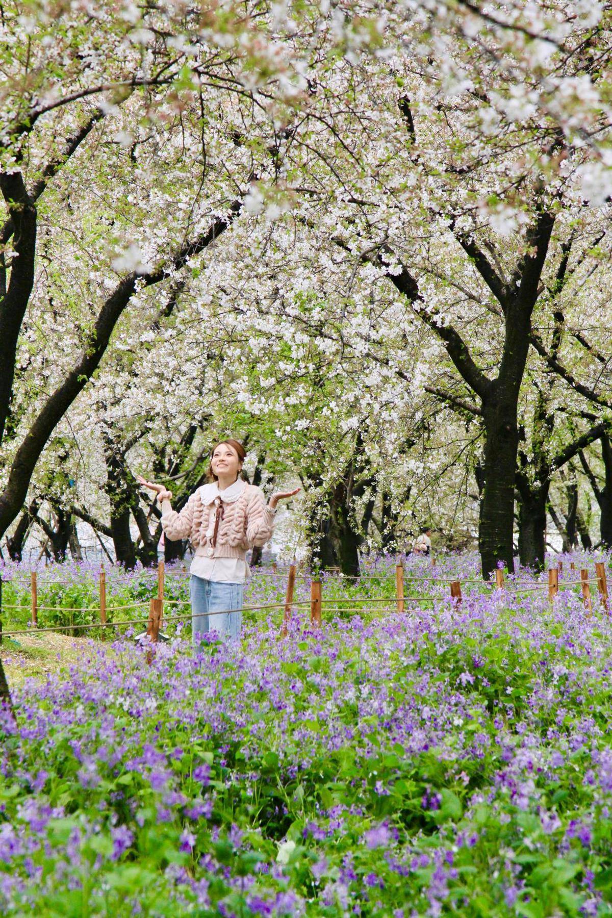 眼下,东湖樱花园正值中樱与晚樱“交接班”之际。中樱如雪,渐次轻落;晚樱似霞,缓缓盛开,形成“半树飞雪、半树繁花”的独特景致。一场花事、两番浪漫。