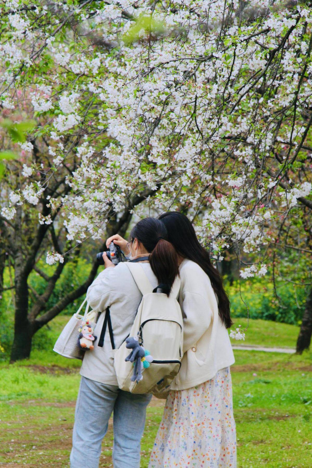 园区内,关山、松月、郁金等晚樱品种接力绽放,重瓣叠影、花叶相依,粉白、绯红、浅绿交织成霞。作为世界三大赏樱胜地之一,东湖樱花园550亩樱林花期有序衔接,晚樱最佳观赏期将持续至4月上旬,为市民游客奉上超长春日浪漫。