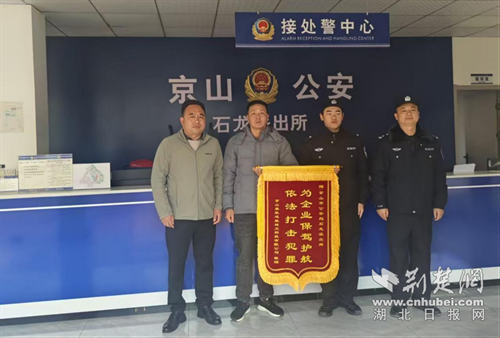 荆楚网(湖北日报网)讯(通讯员 姚寅)近日,京山一企业为京山市公安局石龙派出所送来致谢锦旗,为京山公安高效破案、全力挽损的暖心举措点赞。此前,石龙派出所快速侦破一起职务侵占案,涉案60余万元经济损失已于本月全部追回、全额返还企业,切实维护了辖区企业合法权益。