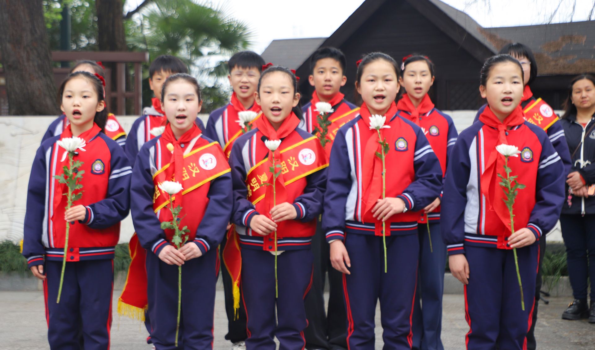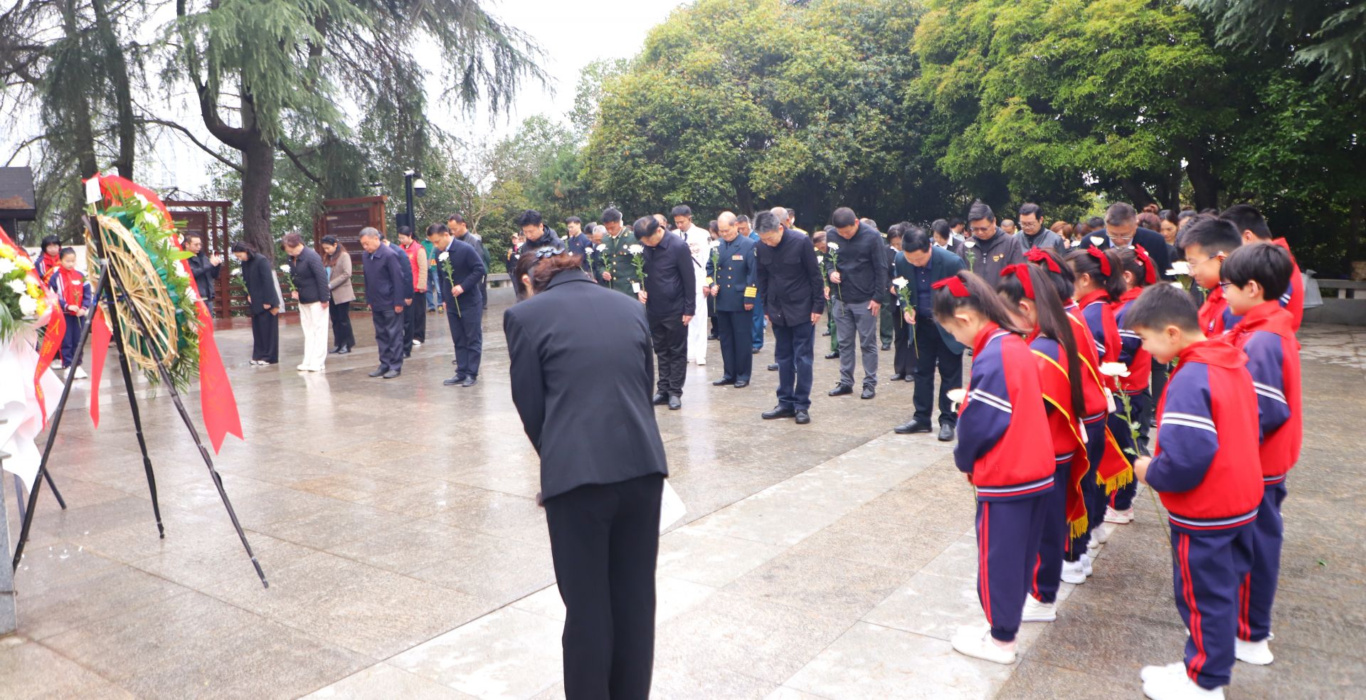 在向警予烈士雕像前,退役军人事务系统干部职工、军休干部、夏明翰小学红领巾讲解员代表及各界群众数百人庄重肃立,全体人员集体默哀、鞠躬行礼,并依次向烈士敬献鲜花,寄托哀思。向警予烈士陵园红领巾讲解员、夏明翰小学学生陈洛伊表示:“现在我们不用像烈士们一样流血牺牲,更要尽自己所能帮助他人,争做新时代好少年!”