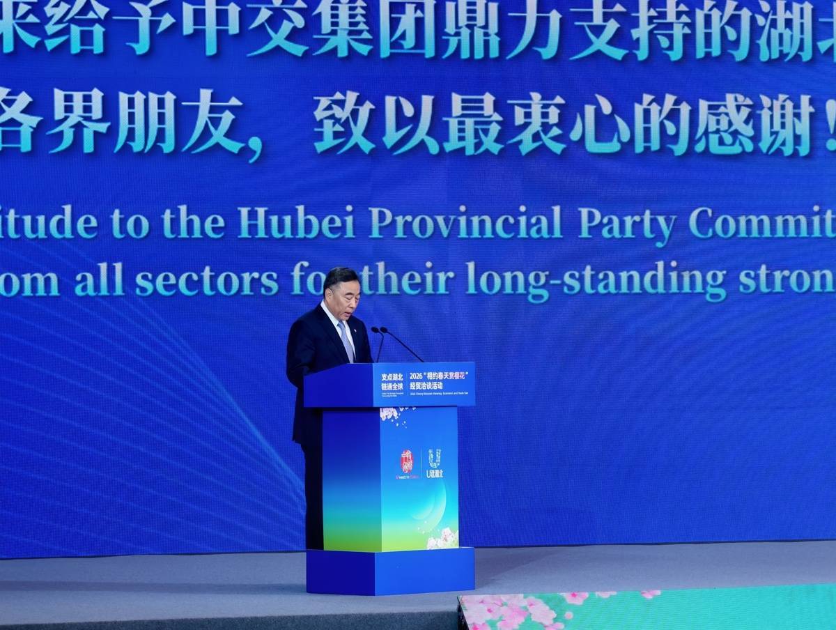 3月31日,2026“相约春天赏樱花”经贸洽谈活动在武汉开幕。开幕式上,中国交通建设集团董事长宋海良介绍,自1950年扎根湖北以来,中交在鄂形成了涵盖5家二级公司、30多家三级子公司、近百家机构的纵深布局。中交集团在鄂业务涵盖综合交通、城市更新、水利环保等多个领域,打造了武汉长江大桥、华中中交城、鄂州花湖机场等一批标志性工程。