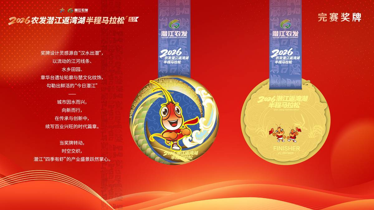 赛事将楚韵文化与虾乡风情深度融入全程。奖牌融入水乡田园、章华台、楚文化纹饰、Q萌龙虾等专属元素,完赛包精心搭配本土品牌小吃,兼具纪念价值与实用功能,让每一份赛事包都成为一份潜江文创礼包。
