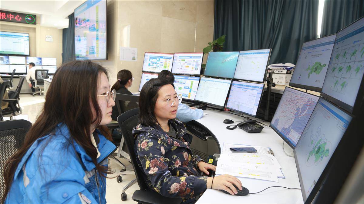 长江委水文局预报中心预报员进行雨情分析。(资料图片)