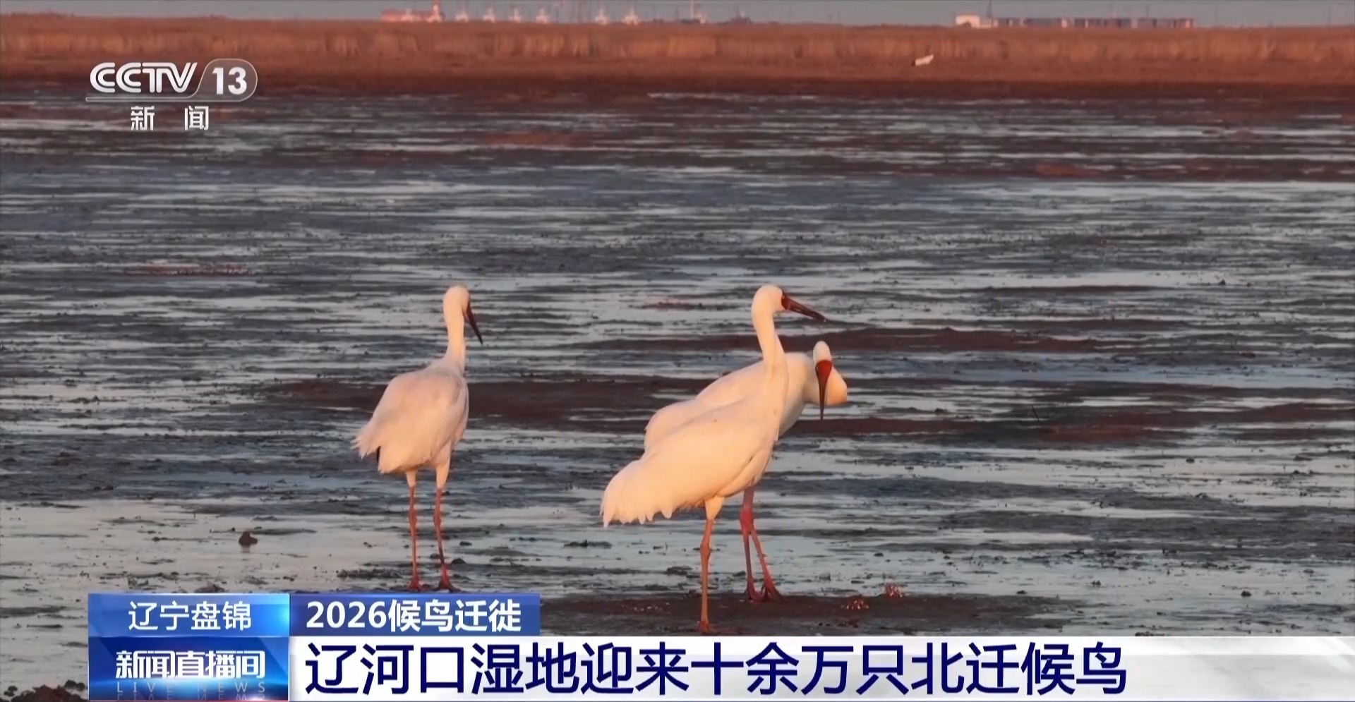 总台记者 季熠非:4月的东北,尽管仍然春寒料峭,但随着气温逐渐回升,现在的辽河口湿地成了候鸟大军漫长旅途中重要的停歇地、中转站。目前,包括白鹤、黑嘴鸥、东方白鹳等珍稀鸟类在内的百余种候鸟,陆续飞到了辽河口湿地停歇栖息,数量已达十余万只。