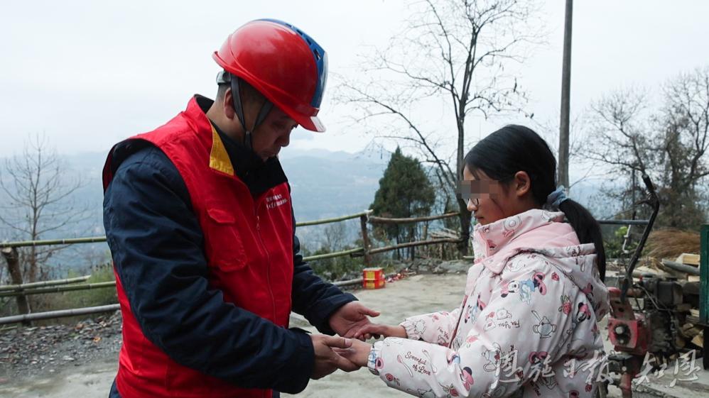 去年除夕前夜,大雪封山。有农户家停电,老人等着用电做雾化治疗。潘李华和同事们绑上草绳,在雪地里一步步往前蹚。
