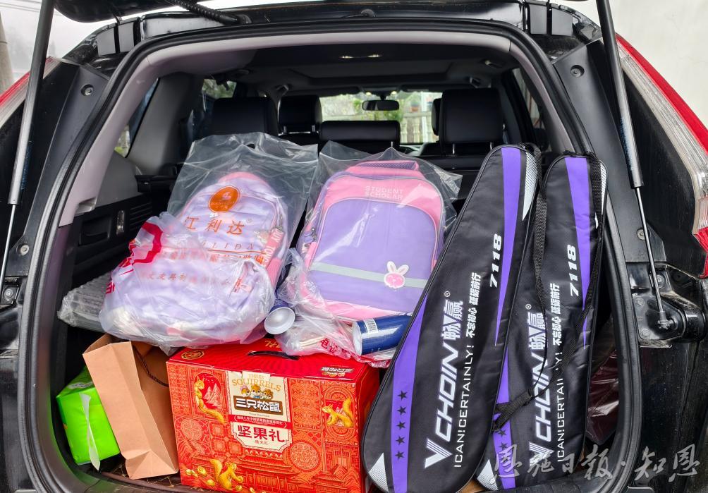 满满当当的后备箱,装满了看望孩子们的礼物。