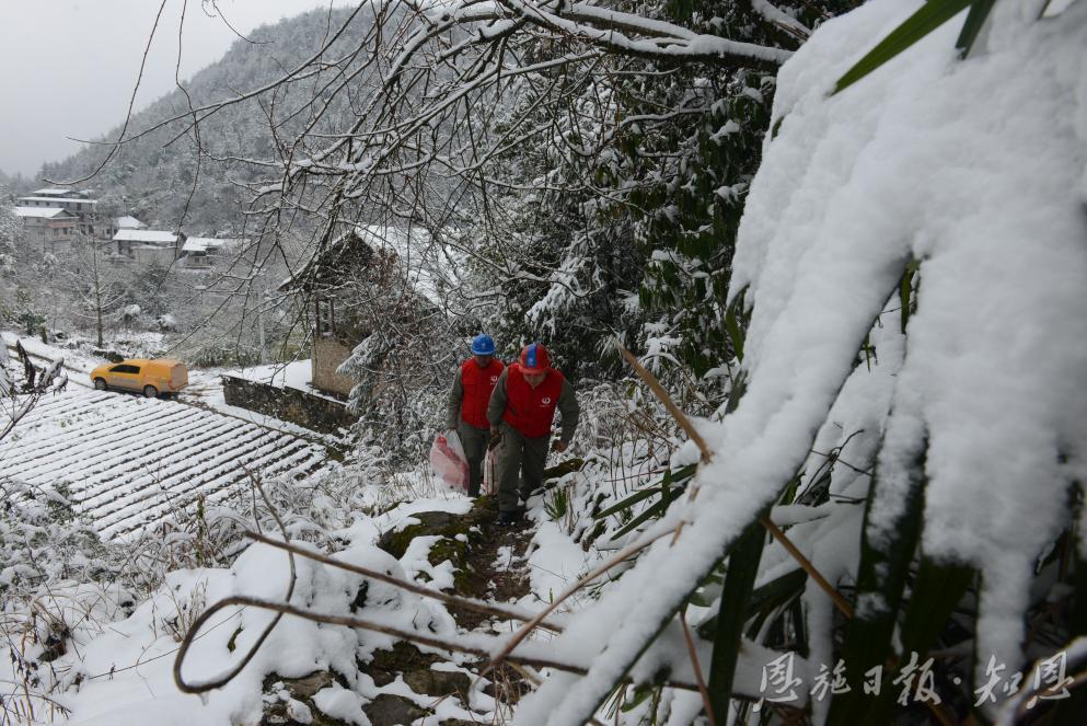 潘李华和同事们冒雪入户走访。