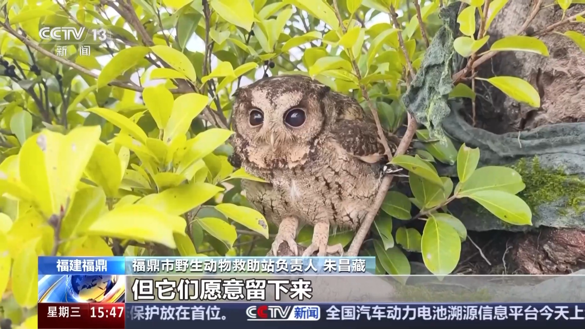我们来认识一种小型猛禽——领角鸮(xiāo),它是国家二级保护野生动物,其实就是我们俗称的猫头鹰。每年都有不少领角鸮在迁飞途中意外受伤。在福建福鼎,有一个爱心组织,持续20年接力救助守护这些飞羽精灵。