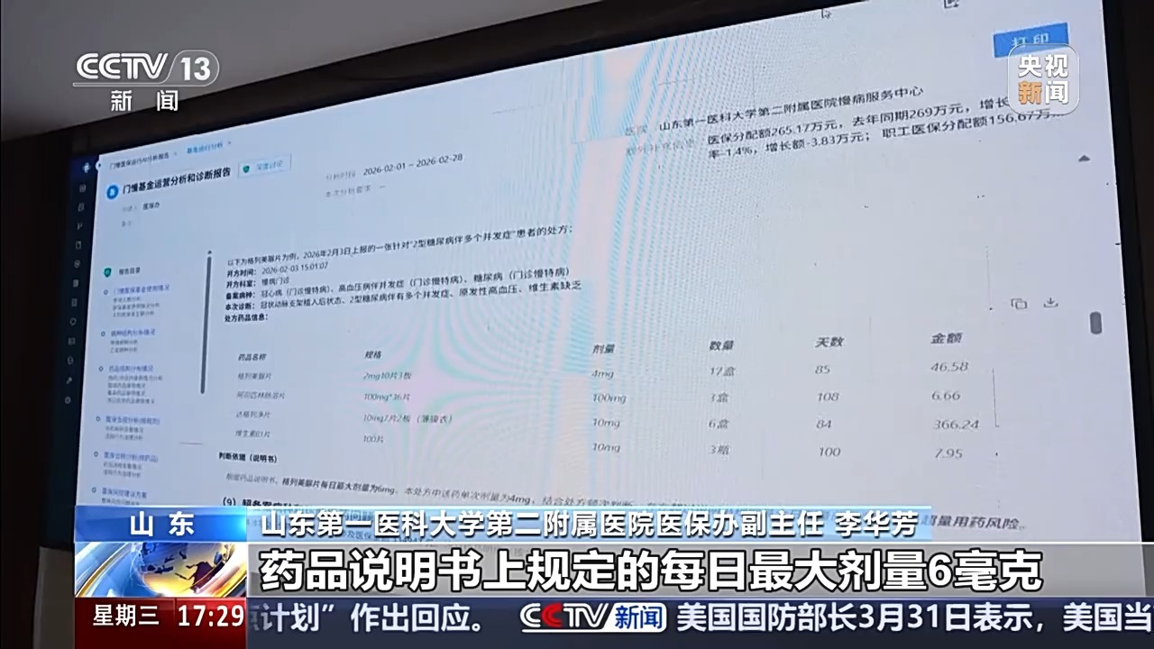 山东第一医科大学第二附属医院医保办副主任 李华芳:上个月3日,慢病门诊给糖尿病患者开出的格列美脲片用量,超过了药品说明书上规定的每日最大剂量6毫克,属于超量用药,请查实整改。