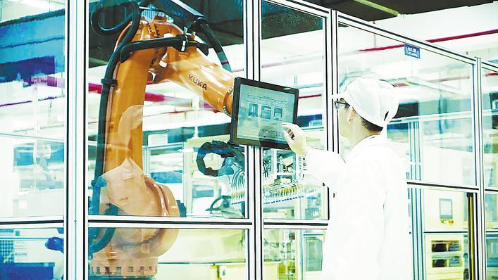 荆门高新区的亿纬动力公司智能化工厂车间。 (掇刀区融媒体中心供图)