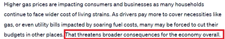 美联社的报道指出,汽油价格上涨正对美国消费者和企业造成负面影响,许多家庭面临日益严峻的生活成本压力。由于油价飙升导致汽油等必需品的支出增加,许多家庭可能被迫削减其他方面的预算。这可能会对美国的整体经济产生更广泛影响。