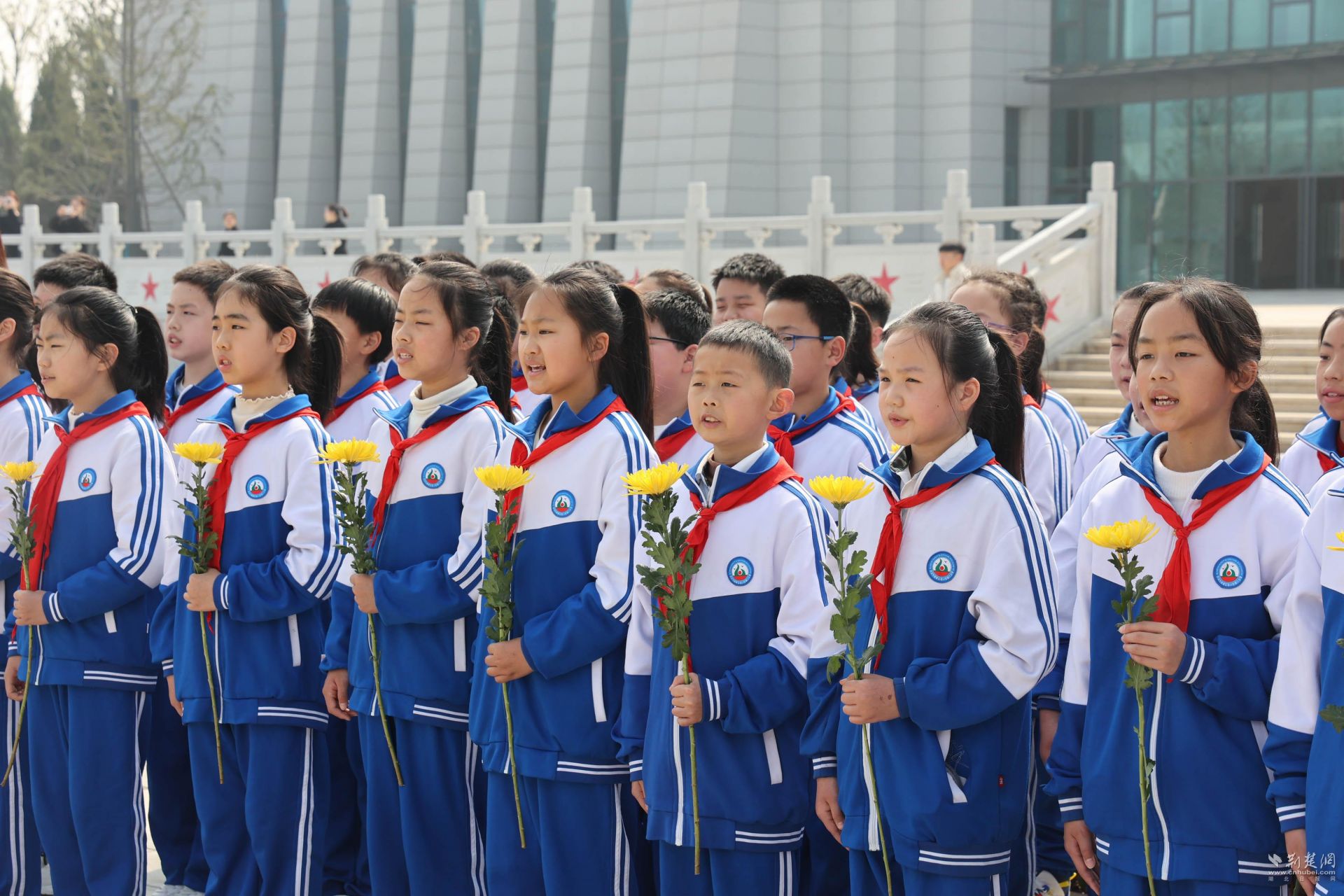 上午9时30分,武汉市及黄陂区退役军人事务局党员干部、烈属代表、军休干部、烈士纪念园结对共建单位、驻陂部队官兵及黄陂区前川第六小学师生等300余人手持献花,整齐列队。