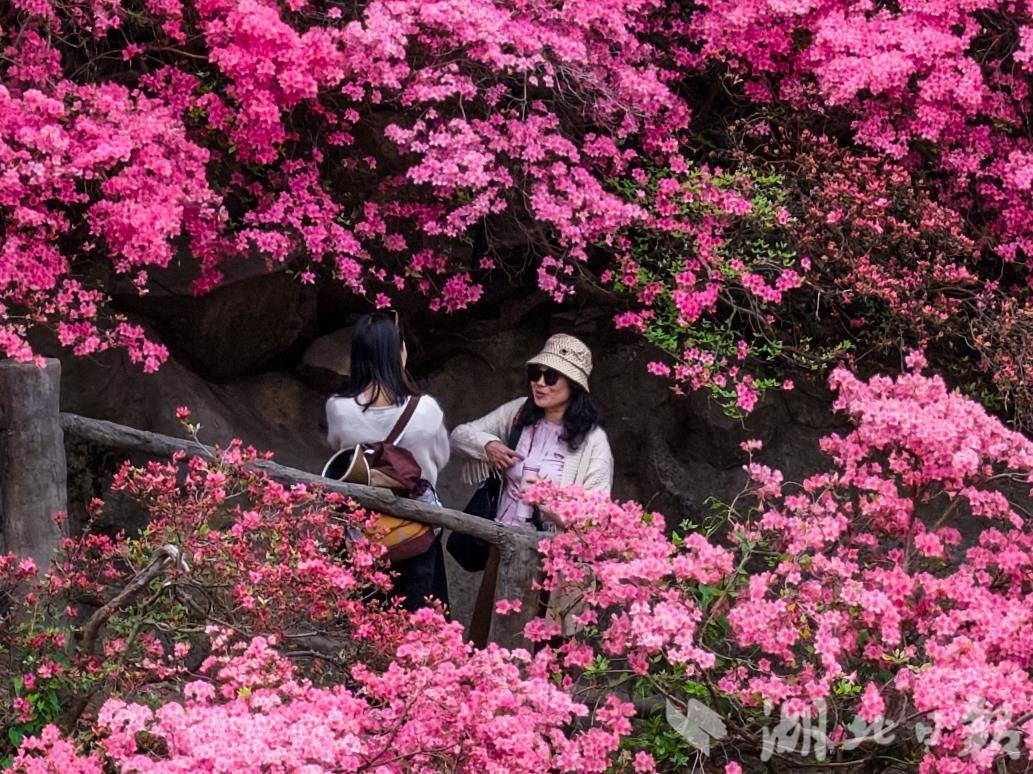 最美人间四月天,2026年4月1日,武汉黄陂云雾山万亩野生杜鹃进入盛花期,花宇山、花海等核心赏花点漫山红遍,蔚为壮观。这里是华中规模最大的野生杜鹃群落,有映山红等7个品种。依托立体气候,杜鹃梯次开放,赏花期长达50天。海拔200米花宇山正值最佳观赏期,400米花海宜取景,700米花洋花期可延续至5月初,方便游客错峰出游。(湖北日报全媒记者 倪娜 通讯员 黄宣 摄)