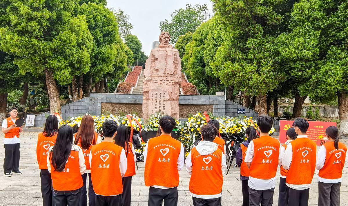 4月2日上午,16名湖北工业大学学生自发来到施洋烈士陵园祭扫革命先烈。施洋是京汉铁路工人大罢工的领导者之一。