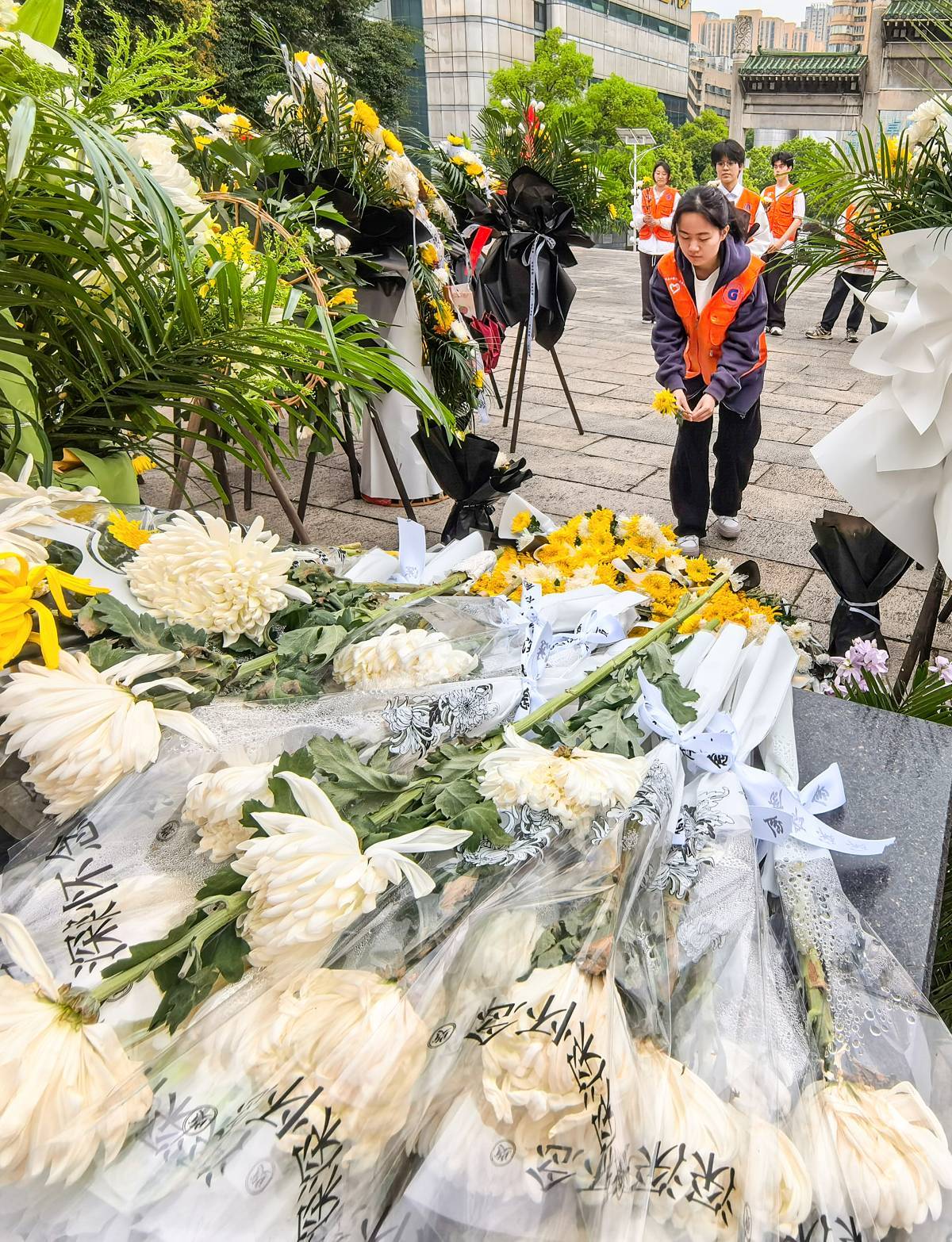 据该陵园工作人员介绍,连日来,许多社会各界人士入园,在施洋的雕像前献花、鞠躬、敬礼等方式祭扫革命先烈。(湖北日报全媒记者 朱熙勇 摄)