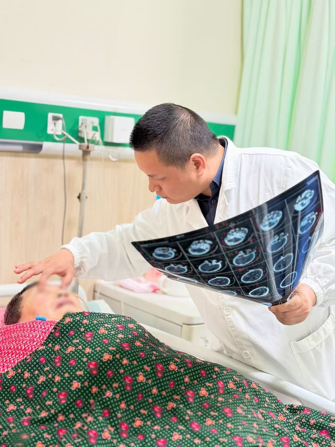 2025年6月,一位患者楼梯摔伤后自行走来医院,CT显示颅内少量出血。李沛文没有掉以轻心,持续观察。中午11点半到下午1点,患者迅速昏迷、瞳孔散大——他立即复查CT,发现脑内大量出血,紧急手术保住性命。这种进展极其迅猛的罕见病例,考验的正是医者的警觉与担当。