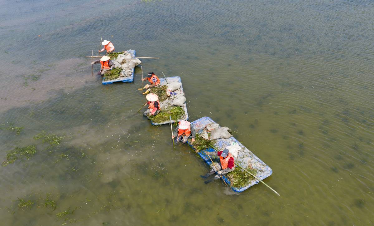 水下如何“种草”?一叉一苗稳扎湖底
