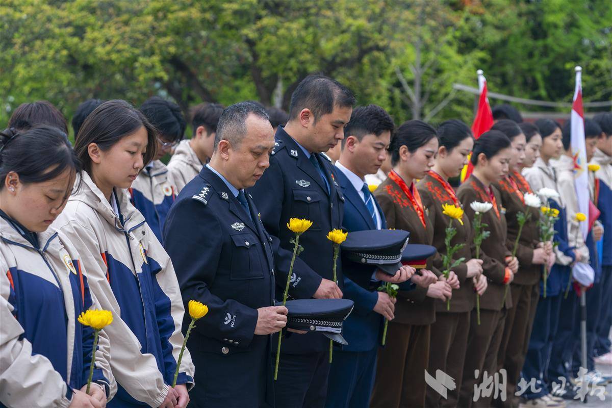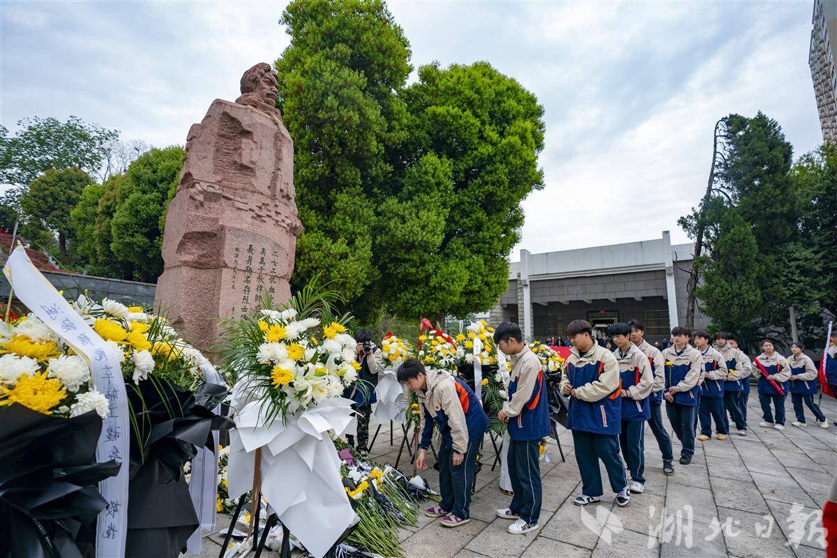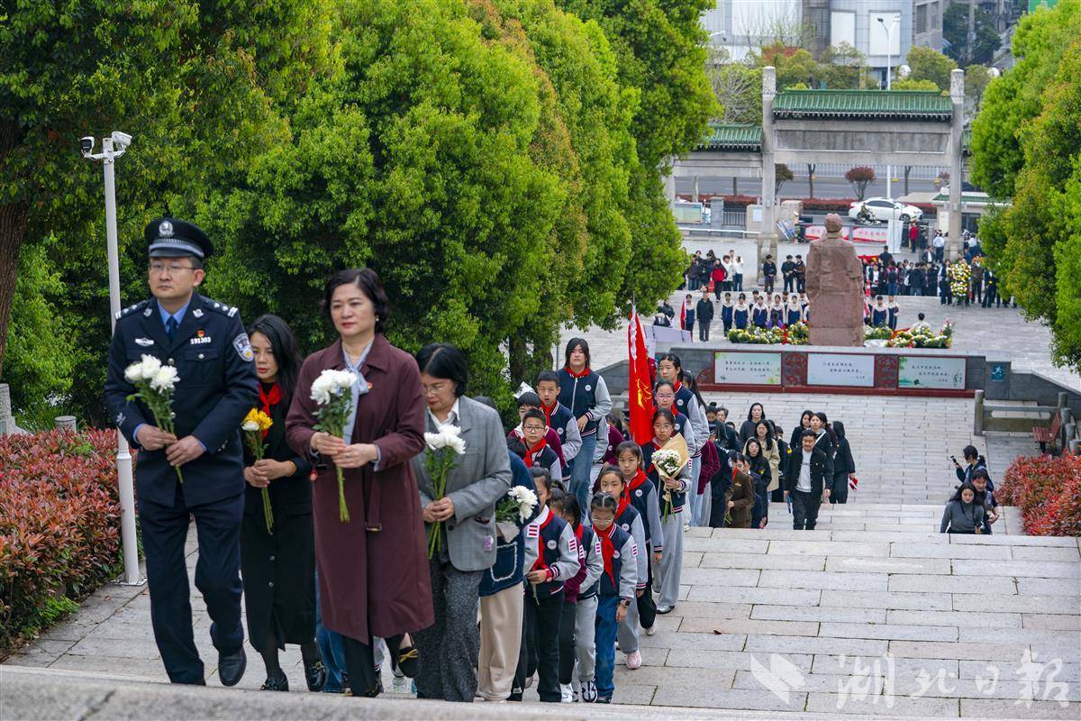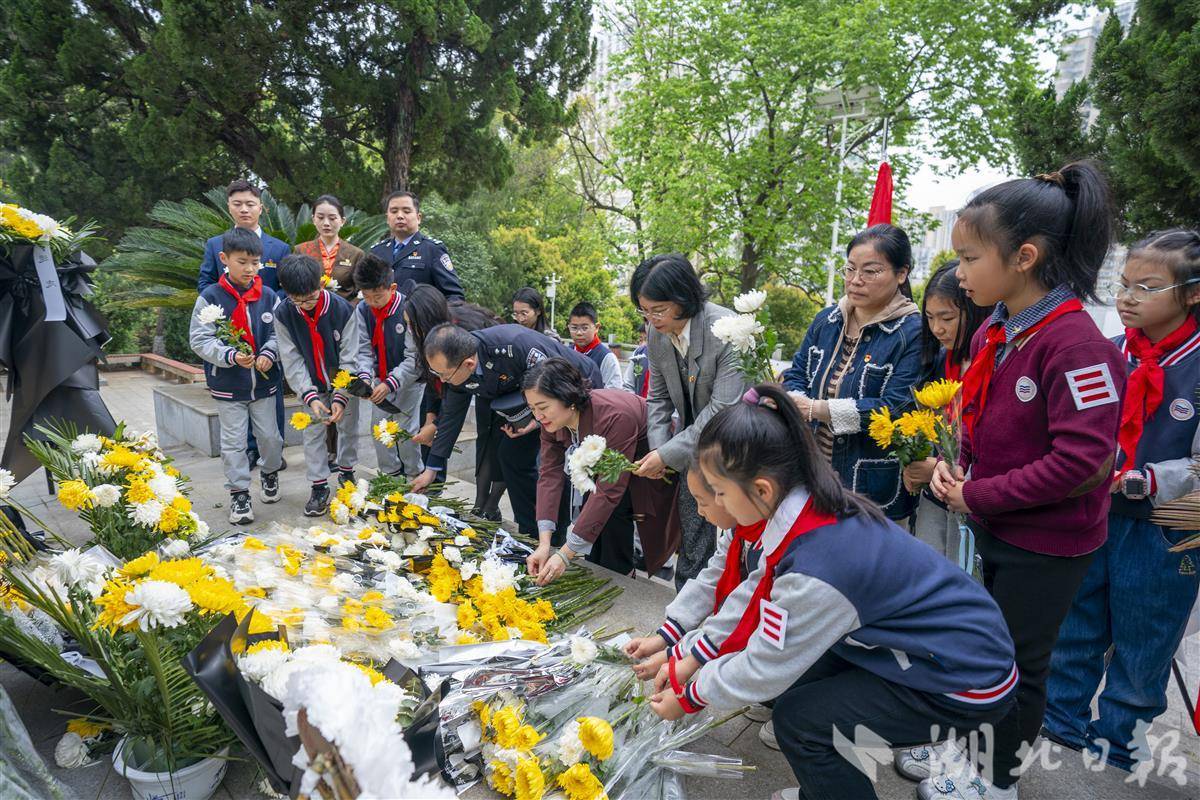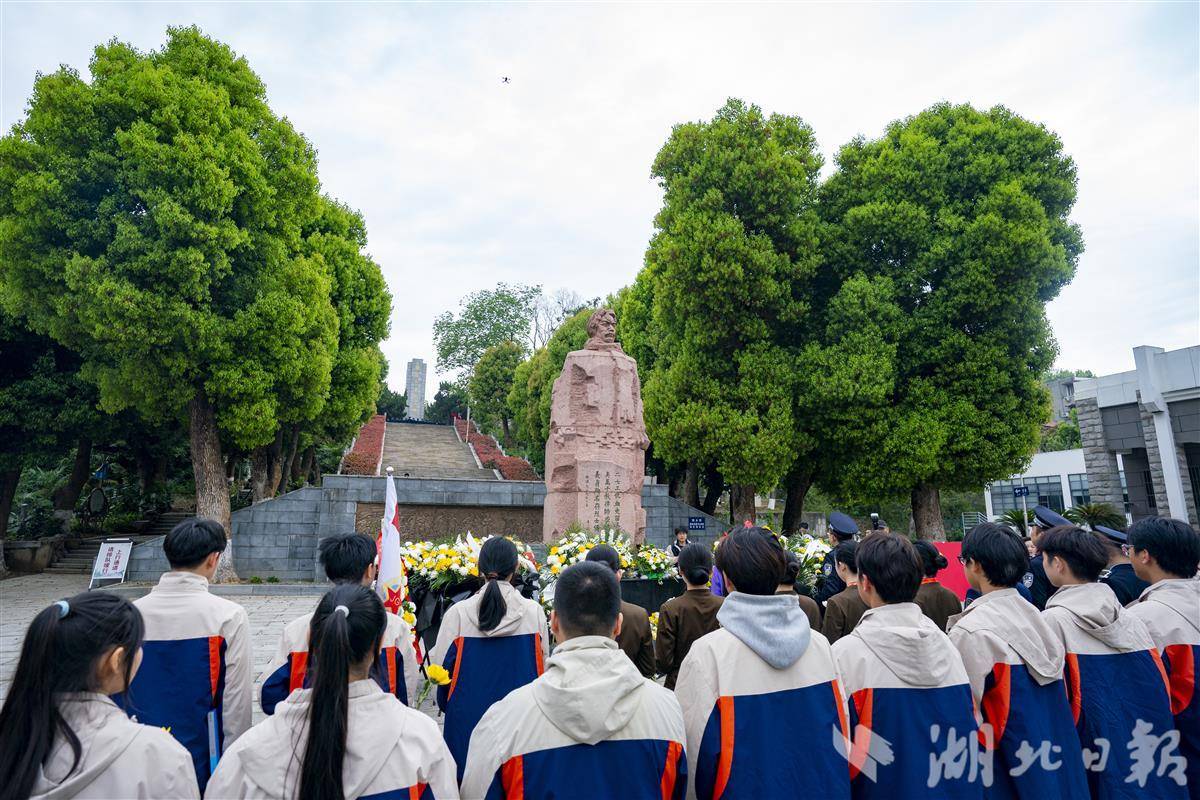 4月2日清明将至,武汉市施洋烈士陵园,公安民警、铁路职工、中小学生开展清明祭扫缅怀活动。当天武汉铁路公安处民警、武汉客运段列车工作人员、武汉军需工业技工学校和洪山区第三小学的学生们,在烈士塑像和纪念碑前敬献鲜花,重温入党、入团誓词,深切缅怀无产阶级革命家、中国首位“劳工律师”施洋烈士。施洋是中国早期工人运动的杰出领导人,曾领导了汉阳钢铁厂工人罢工、京汉铁路工人大罢工,为劳工权益英勇献身。(湖北日报全媒记者 魏铼 通讯员 杨家乐 秦思 摄)
