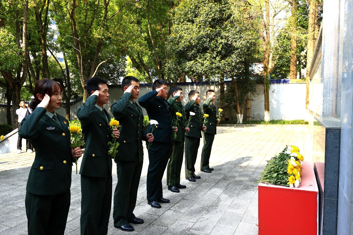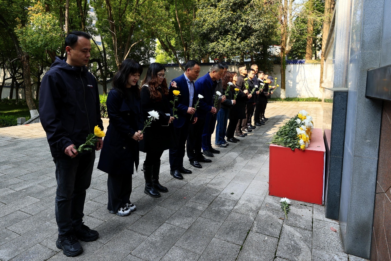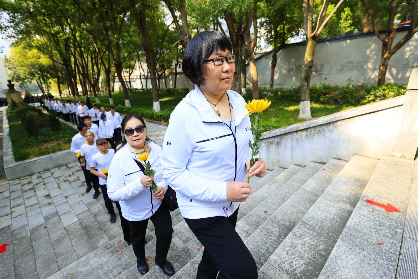在工作人员引导下,全体代表依次有序上前,向革命先烈敬献鲜花。一朵朵金黄与素白的鲜花,承载着追思与敬意,寄托着对英烈的深切缅怀。