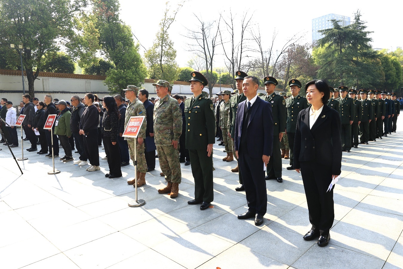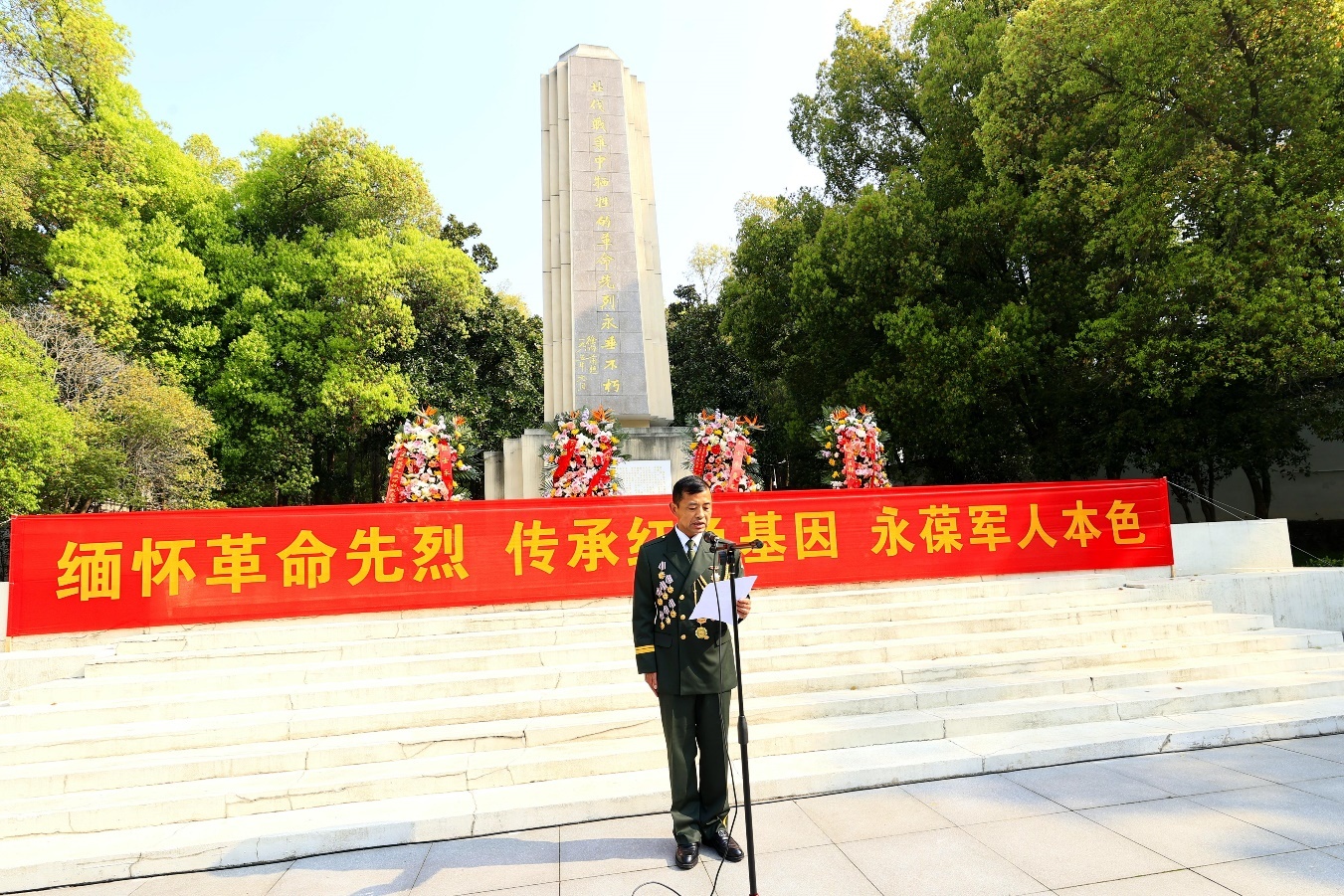 活动现场,庄严肃穆,纪念碑高耸入云,鲜花寄托哀思。驻区部队官兵、军休干部及优秀退役军人代表整齐列队,军容严整,共同致敬英烈,以最肃穆的仪式缅怀革命先辈,以最坚定的誓言传承红色精神。