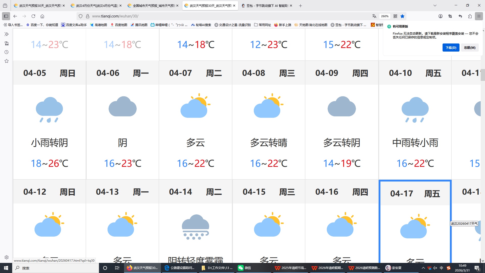 湖北日报讯(记者甄子萱、通讯员刘诗雨)4月2日,记者从武汉市交通运输局获悉,为迎接清明假期,满足市民集中祭扫、樱花季踏青出游需求,市交通运输局综合假期天气、路网流量预判及交通保障方案,推出2026年清明假期出行指南。
